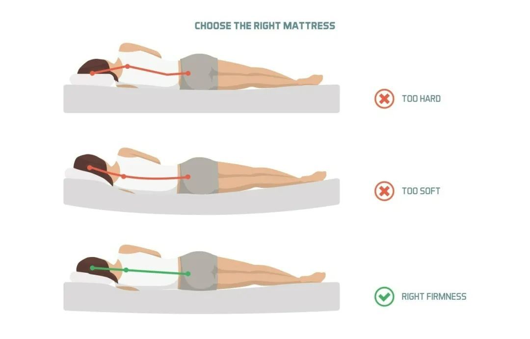 床面过硬的话,人躺上去床面几乎不会顺应身体产生形变贴合。这样无论怎么躺,腰部下方会形成真空区域,没有任何支撑保护;以致于腰部肌肉为了维持姿势,需要一直保持紧张状态。